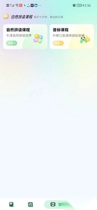 在学习页面中提供了自然拼读课程和音标课程等信息;