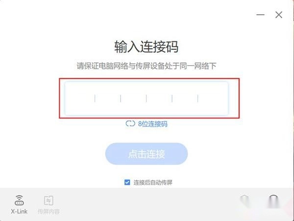 请确保电脑网络和传屏设备在同一个网络环境中,输入连接码就能完成连接。