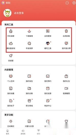 进入“我的”页面,可找到手机清理、设备管理、应用更新与卸载以及***等功能。