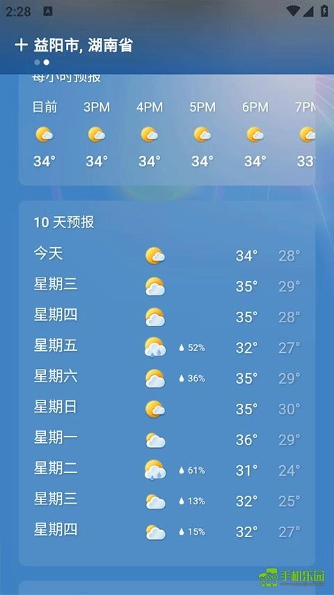 除了当日的天气状况,您还能向下滑动页面查看未来10天的天气预报。