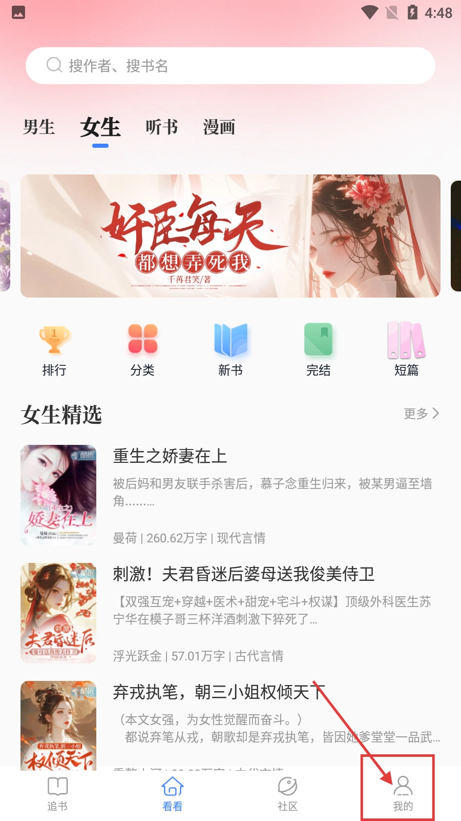 进入小说首页,点击【分类】,进入书库页面。