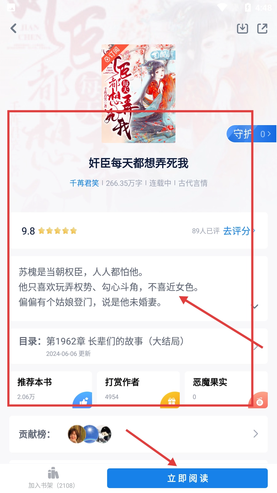 在小说详情页面,点击【立即阅读】按钮,即可开启小说阅读之旅。