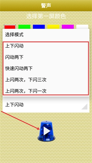 点击对应的模式选项(例如“闪动两下”)后,会弹出“选择模式”的子选项列表,通过该列表可以进一步挑选具体的闪动规则。