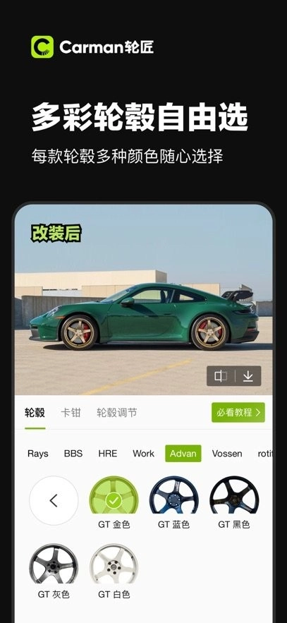 海量轮毂型号,支持180°和45°车图的轮毂改装预览,以及车身低趴预览。效果逼真,操作简单。改装前先用Carman轮匠,省钱又省心!