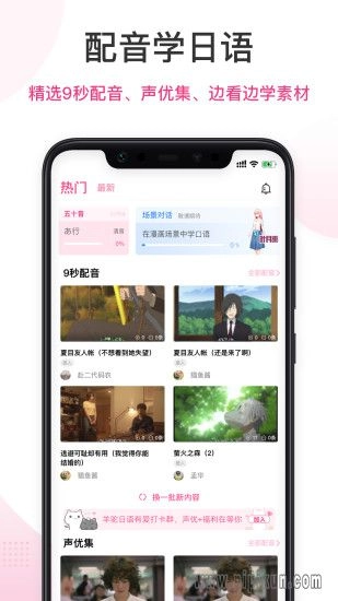 爱上学日语软件 这是一款专注于日语学习的语言教育软件,我们精心挑选了9秒配音、声优演绎的视听素材,让你在日漫、日剧、歌曲等内容中轻松感受日语学习的乐趣。通过原创记忆法,你可以全方位掌握104个日语发音。欢迎你来皮皮鲲站体验!