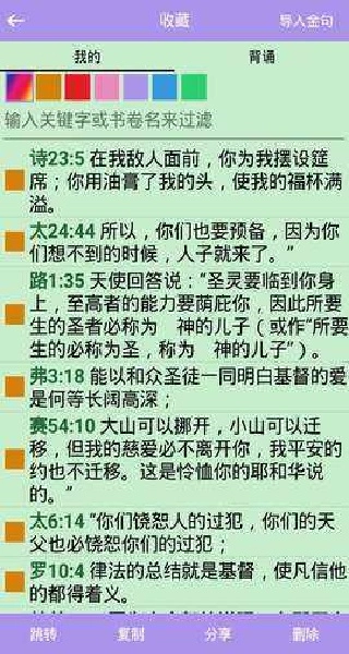 提供“关键词检索”“主题检索”双模式,关键词检索可精准定位包含特定词汇的经文;主题检索则按“救赎”“宽恕”“盼望”等核心主题聚合经文,方便系统性研究。