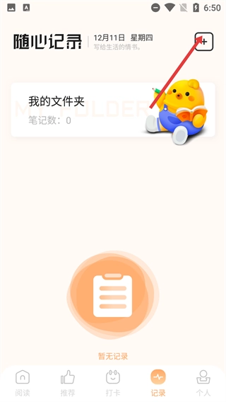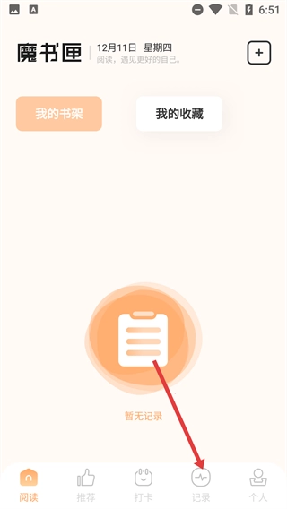 在魔书匣的阅读界面,点击底部的【记录】选项,即可进入随心记录的专属页面。