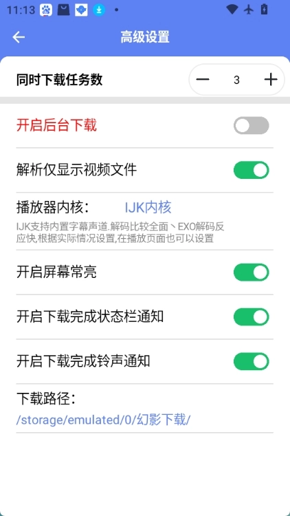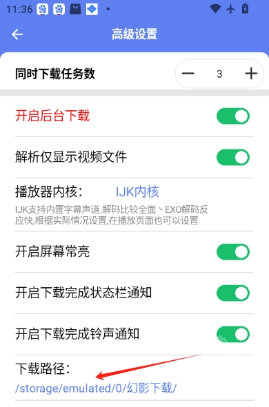 在高级设置中能够看到路径(安装完成后的默认路径为/storage/emulated/0/幻影/),幻影文件就位于该目录当中。