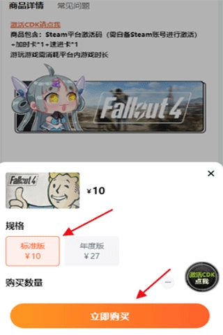 2、商品详情页会展示商品的详细信息,一款游戏可能有多种不同规格,大家可根据自身需求选购。进入购买页面时,记得确认好自己要选的版本是否正确哦~确认无误后,点击“立即购买”即可。