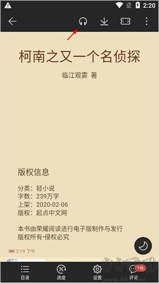 3、点击屏幕顶部的听书按钮,即可开启自动朗读功能,解放双眼,轻松聆听故事。