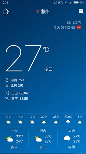 4、【天气】覆盖全国多个地区的气象信息,以生动直观的方式呈现晴雨等天气状况