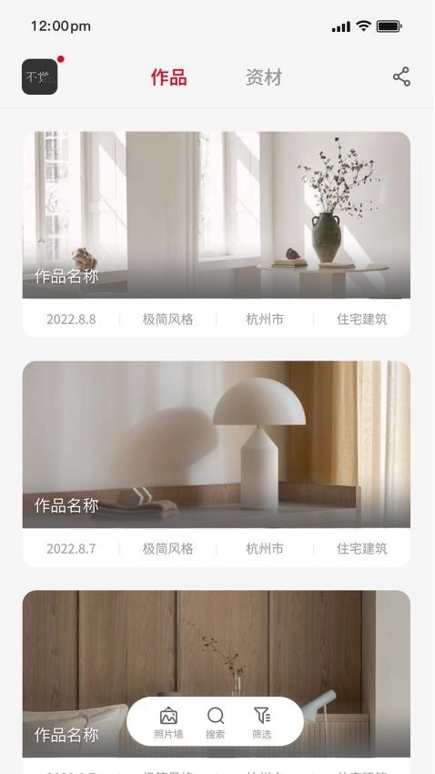 3、点击筛选或搜索功能,依据自身需求查找心仪的设计风格