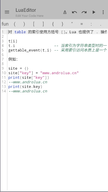 Lua 开发者可借助编辑器功能进行 Lua 代码的编写与程序调试。