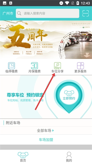 1、进入互助停车首页后,点击【车位分享】选项,即可进入车位分享的操作页面。