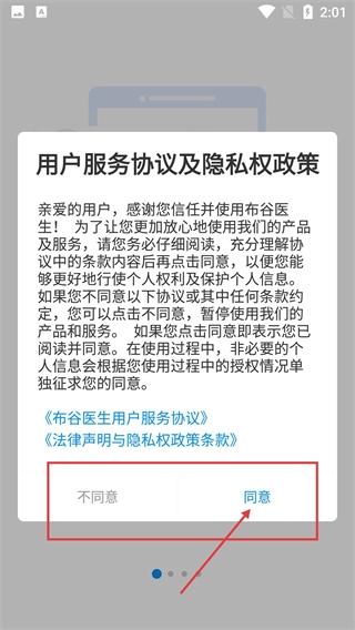 打开这款面向医护人员的线上工作室工具类应用后,会弹出【用户服务协议及隐私权政策】的相关弹窗。