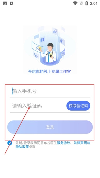 2、进入登录界面,输入手机号码并点击【获取验证码】按钮,填写接收到的验证码就能完成登录操作,尚未注册的号码将自动完成注册流程。