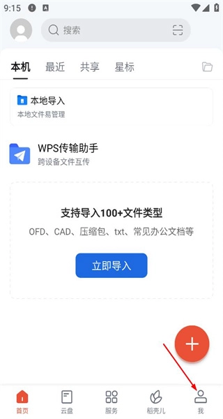 1、启动软件后进入首页,这里会呈现本地导入等功能选项,接着点击右下角的“我”,即可进入个人功能页面。