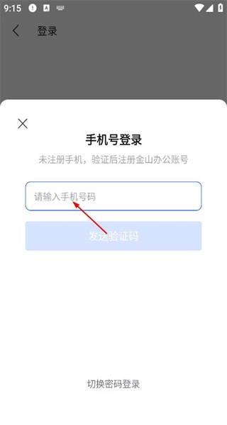 4、在手机号登录界面,用户输入手机号码,准备通过获取验证码来完成登录流程。