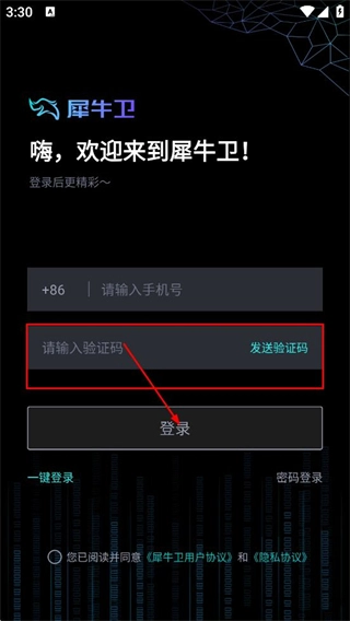 在验证码登录页面,输入手机号码后,即可开展后续操作。