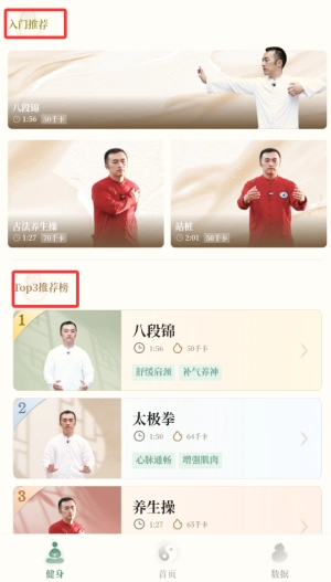 应用启动后,在首页找到“健身”模块并点击进入,即可进入功法练习专区。