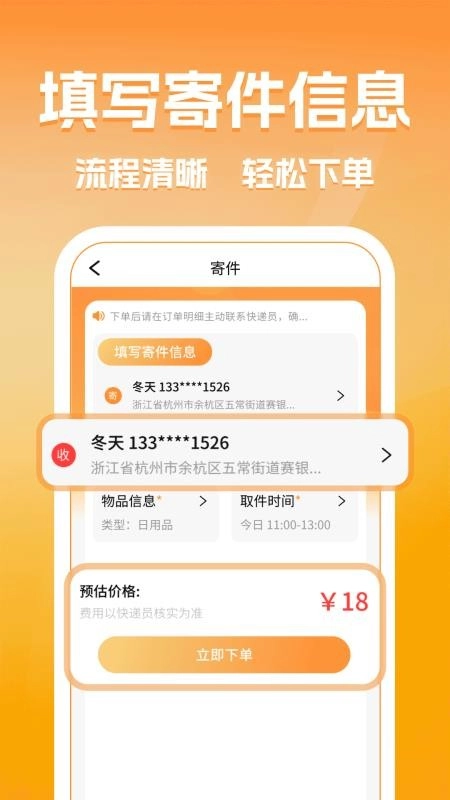 软件具备快递寄送功能,只需填写完整的寄件信息完成下单操作,即可实现实时下单。
