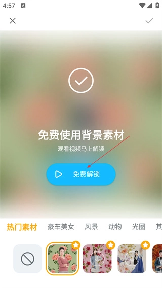 3、进入背景素材解锁页面,点击【免费解锁】按钮,观看视频即可解锁该背景素材。