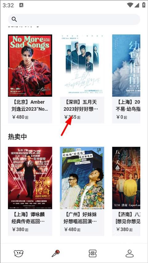 打开购票栏后,用户能够查看抢票倒计时、热卖中的演出以及所有演出的购票详情,还可以点击打开购票链接。