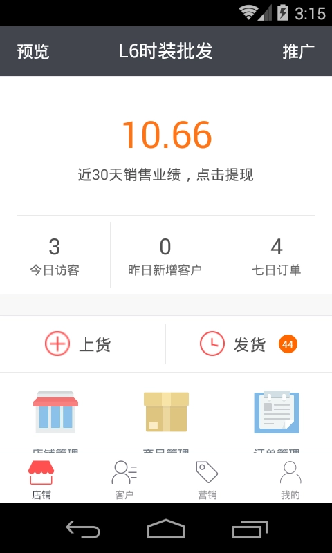 2、店铺管理:可对商品的发货与上架进行管理,助力轻松运营店铺
