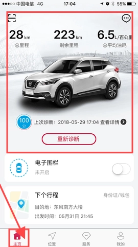 1、打开应用,在主页中可以查看车的状况。