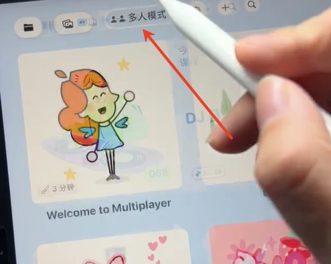 1、打开主页,找到并点击“多人模式”按钮(部分版本显示为双人图标),即可进入双人创作界面。