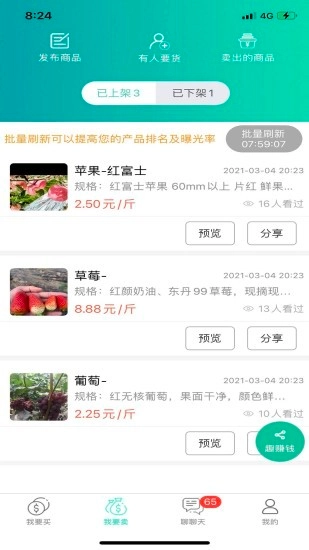 趣批发 趣批发是一款专门面向农产品批发采购场景开发的手机应用。平台汇聚了海量农产品资源,覆盖水果、蔬菜、水产、中药材等多个品类,用户可在线便捷完成浏览、筛选及下单操作,无需外出即可实现线上采购。该软件支持线上订货功能,用户能随时随地掌握全国市场的新品动态,及时了解农产品的最新行情与价格走势。此外,用户还可以在平台发布自身的农产品信息,以此对接更多潜在客户,进一步拓展销售渠道。