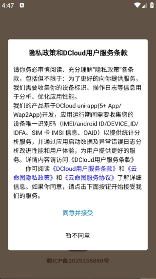 1. 并安装,点击‘同意并接受’,即可进入主页面;