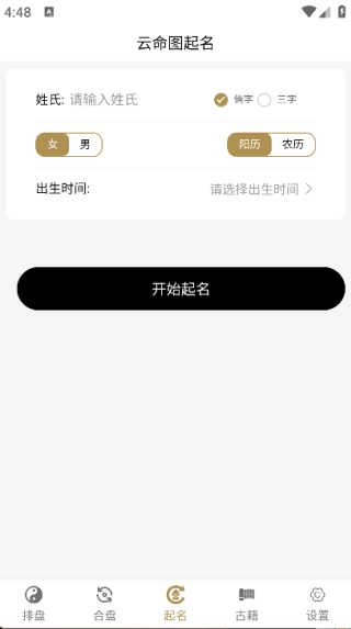 云命图排盘起名是一款融合传统文化精髓与现代科技优势的专业工具软件。它以用户的生辰八字为依据,借助精准的排盘测算,为用户呈现详尽的命理运势解析。同时,软件还收录了海量国学古籍资源,为用户提供丰富的学习素材,帮助用户深入探寻传统文化的内涵。