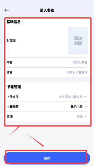 2、先上传基本信息和书籍管理信息,然后点击下方的保存按钮。