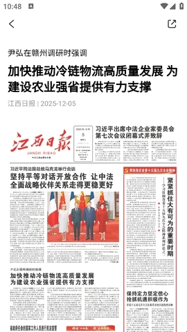 江西新闻 “江西新闻”是江西日报社倾力打造的新闻客户端平台,平台全天24小时持续更新,为用户送上最新、最权威的资讯内容。平台立足江西本地,同时兼具全球视野,涵盖社会、民生、娱乐、体育、军事等多元领域新闻,助力用户第一时间掌握热点动态,真正实现“足不出户,尽知天下事”。