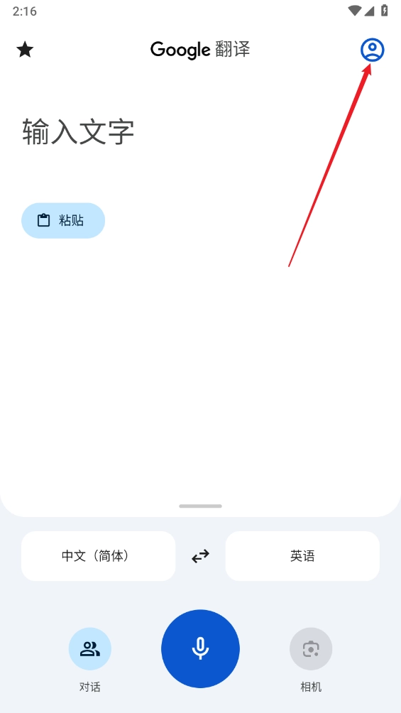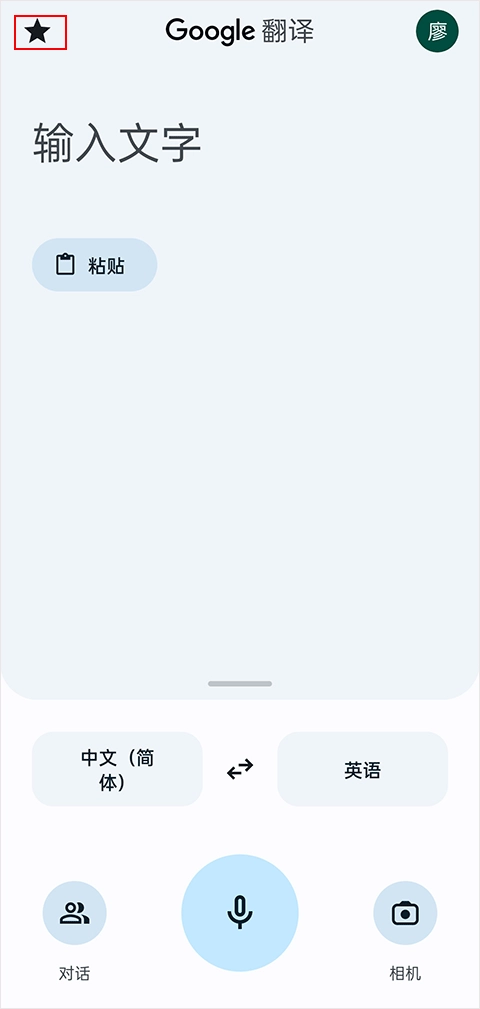 1、打开软件,输入需要翻译的文本,点击右上方的五角星图标使其点亮就可以了。
