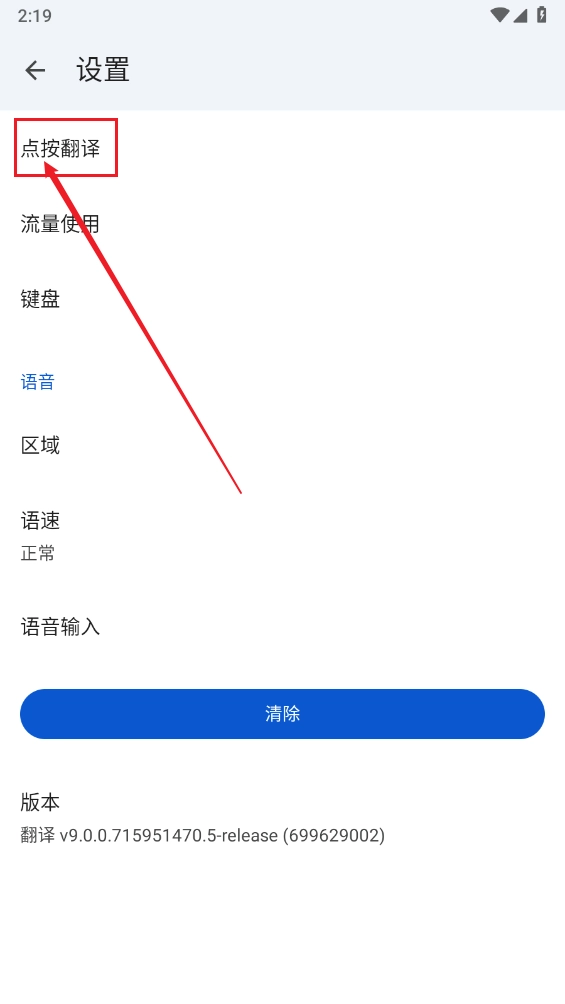 5、最后在点按翻译的页面打开“点按翻译”功能的开关就可以了。