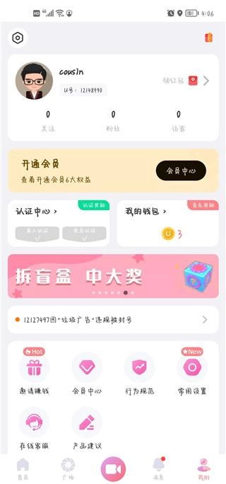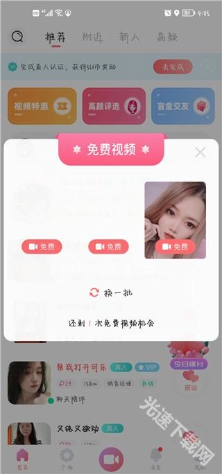 5、进入视频界面后,用户每日可获得一次免费与其他用户进行视频互动的机会。