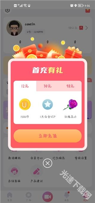 9、有充值需求的用户可自行操作充值,新用户首次充值还能获得专属好礼。