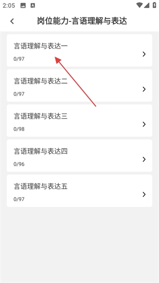3、在子章节列表页面,找到并选择“言语理解与表达一”这一选项,随后进入该章节对应的答题页面。