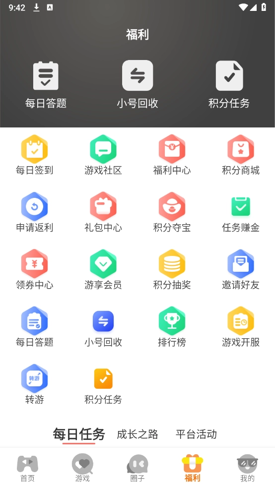 6、点击“福利”,可以通过完成每天的任务获得福利哦。