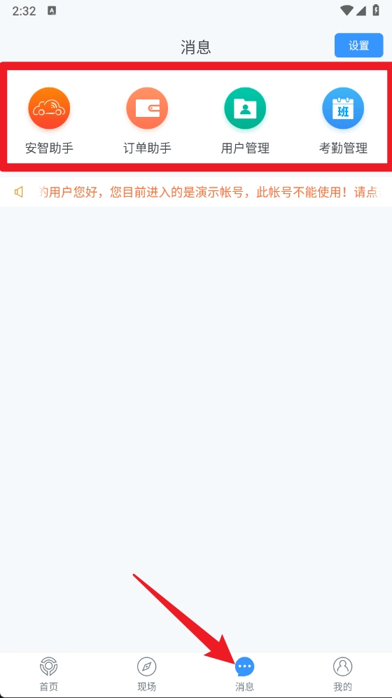 5、通过消息功能,用户能够查看安智助手、订单助手、用户管理以及考勤管理的相关通知,从而及时了解系统的动态信息。