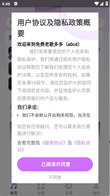 1、用户首先在本站免费获取老歌多多,查看并同意隐私政策与用户协议。