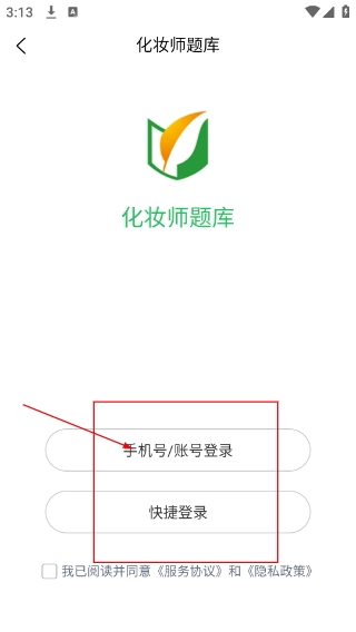 2、进入【化妆师题库】登录选择页,可选择【手机号/账号登录】或【快捷登录】方式后开展操作。