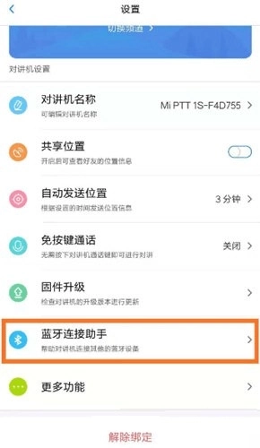 1、开启小米对讲机,完成与对讲机的连接后,点击界面右上角的设置图标。