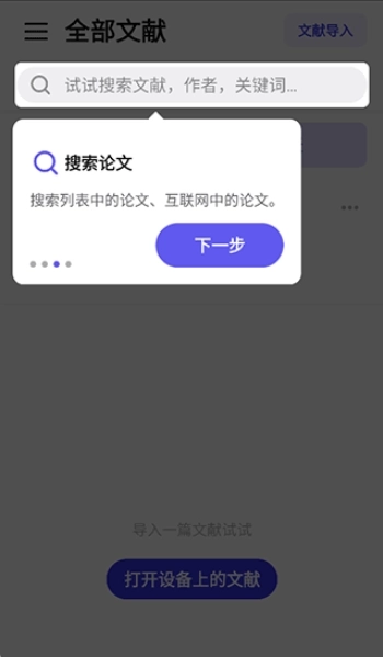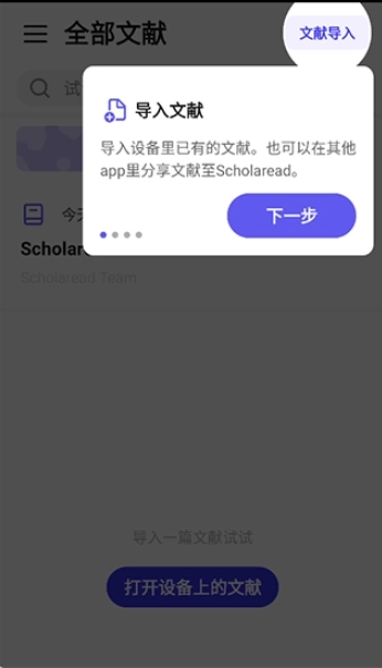 1、可以导入设备中已存储的文献,也能通过“其它”渠道将文献分享至此处。