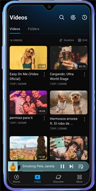 在视频板块中,你可以读取手机本地存储的所有视频内容,在这里能够进行简单的音频播放操作,也可以对视频进行分享和整理。