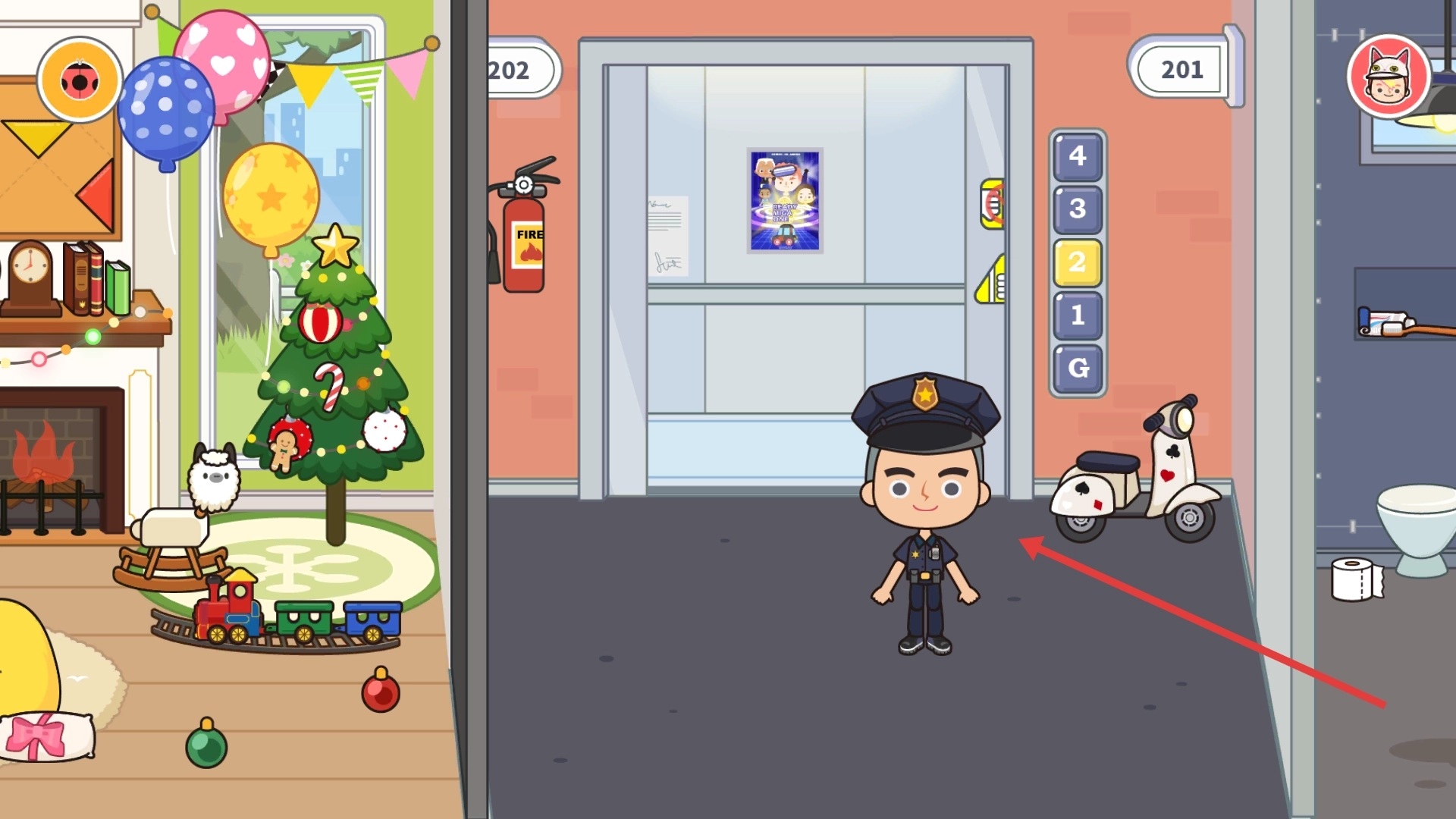 1、进入建筑楼层界面后,你可以同时查看场景里的装饰和道具,点击控制角色就能触发互动,推动剧情往下发展。