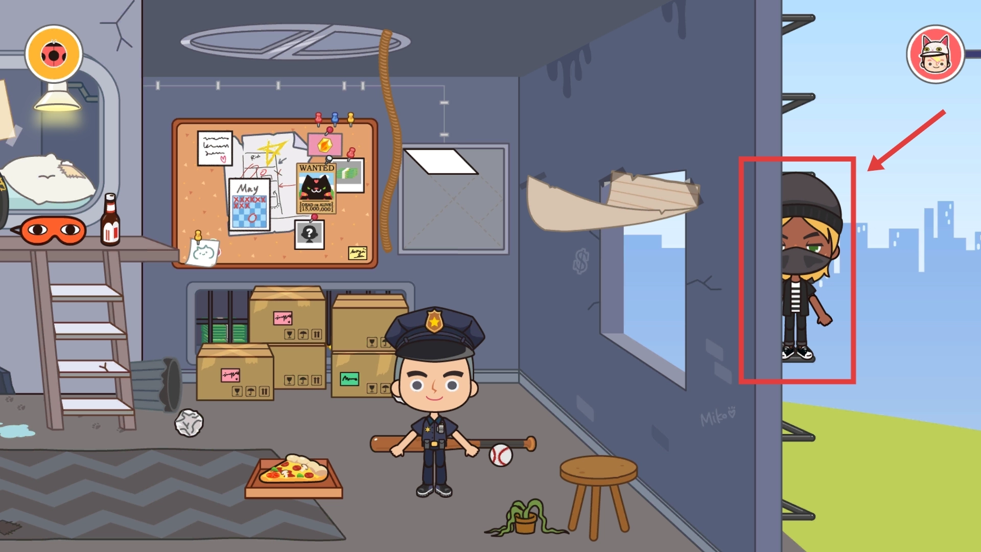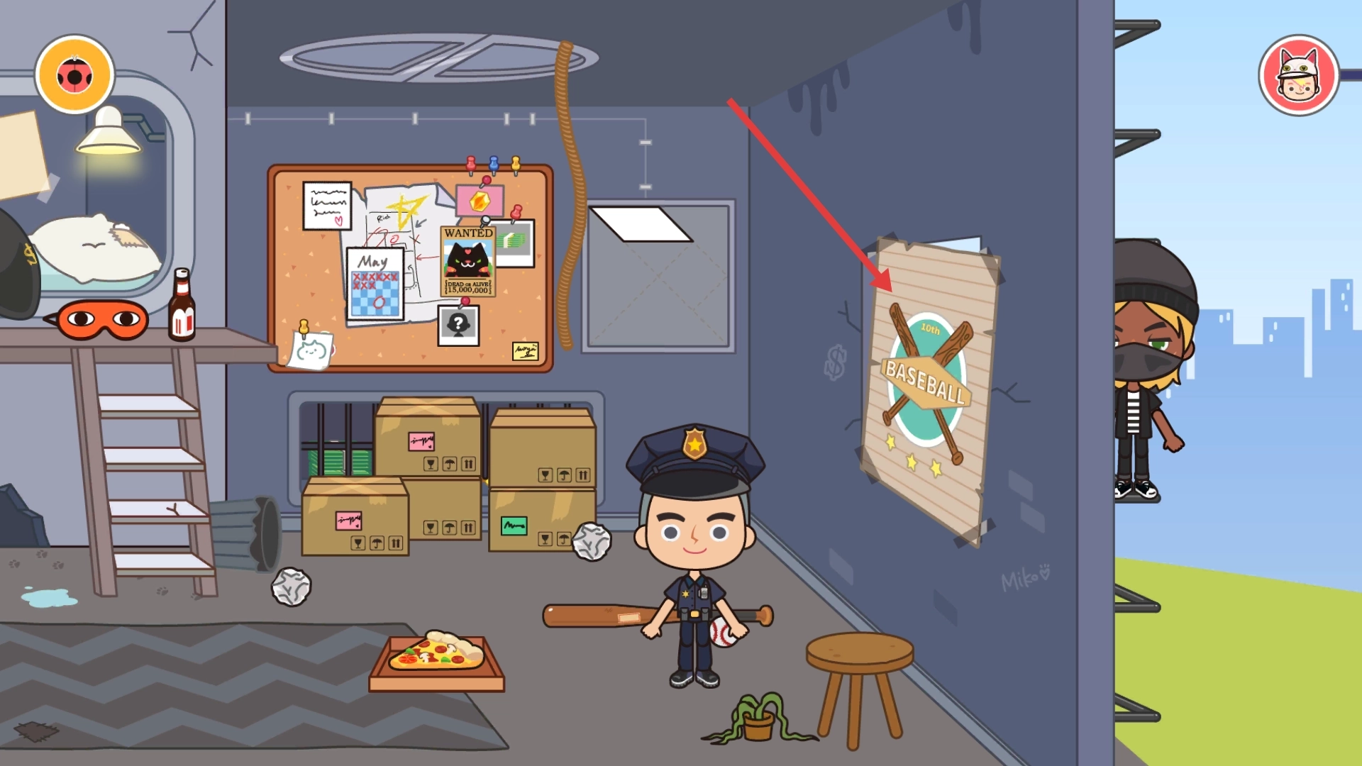 2、进入室内场景后,点击墙面装饰(例如【BASEBALL】标识),可以触发场景变化或者获取道具,还能查看线索板上的信息。