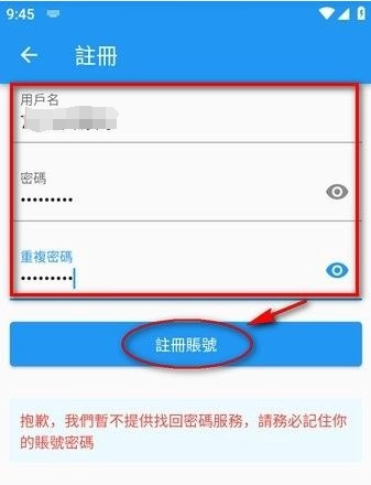 3、接着填写用户名和密码,这两项可以随意设置,之后点击“注册账号”按钮。